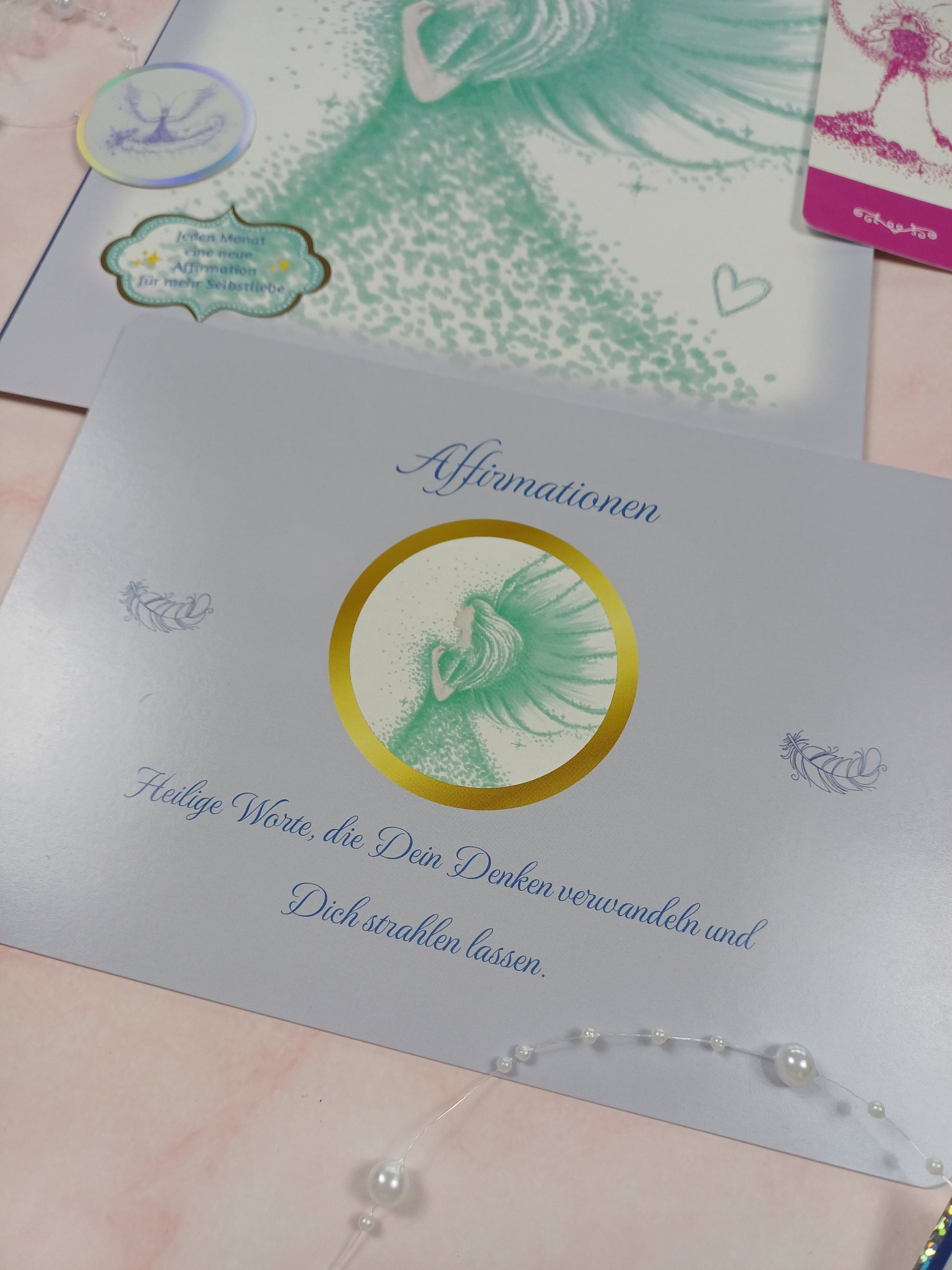 inkl. 2 Sticker, 1 Lesezeichen Deiner Wahl und einer Info-Karte über Affirmationen und wie Du diese nutzen kannst